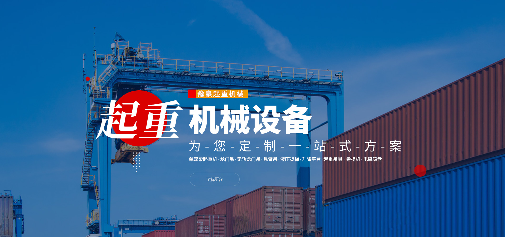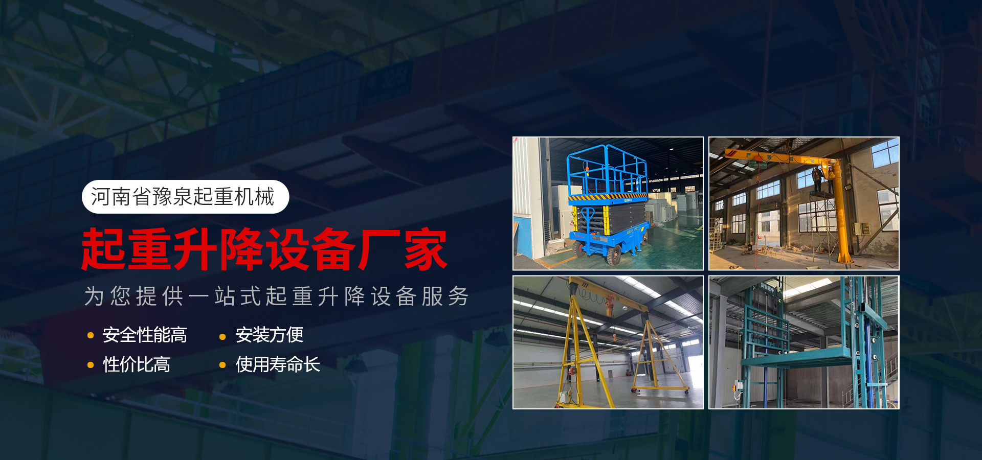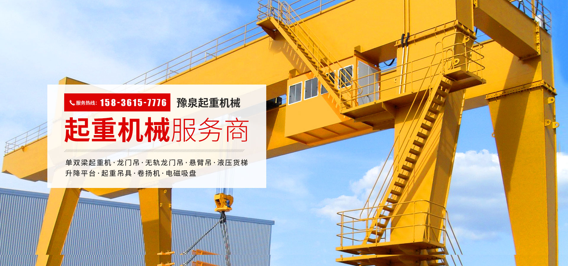 河南省豫泉起重機械有限公司位于河南省新鄉市長垣,我公司主要銷售各種型號單、雙梁、橋式、門式起重機、龍門吊、無軌龍門吊、懸臂吊、液壓貨梯、升降平臺、起重吊具、卷揚機、電磁吸盤及零部件的制造及銷售等。 廣泛應用于水泥、礦山、鋼鐵、冶金、煤礦、建筑及物流等行業。河南省豫泉起重機械有限公司根據市場發展的需要在進一步完善定型產品的基礎上,不斷開發出新產品和引進高新生產技術。 精誠合作,互利雙贏是我們...【查看詳情+】